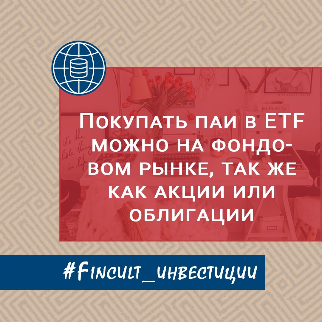 Расшифровка англ. Exchange Traded Fund - биржевой или индексный фонд. Это инвестиционный инструмент, который мы можем купить на фондовой бирже. Плюсы: * Фонд состоит из нескольких компаний. Покупая один пай в нём, я сразу покупаю часть нескольких компаний.