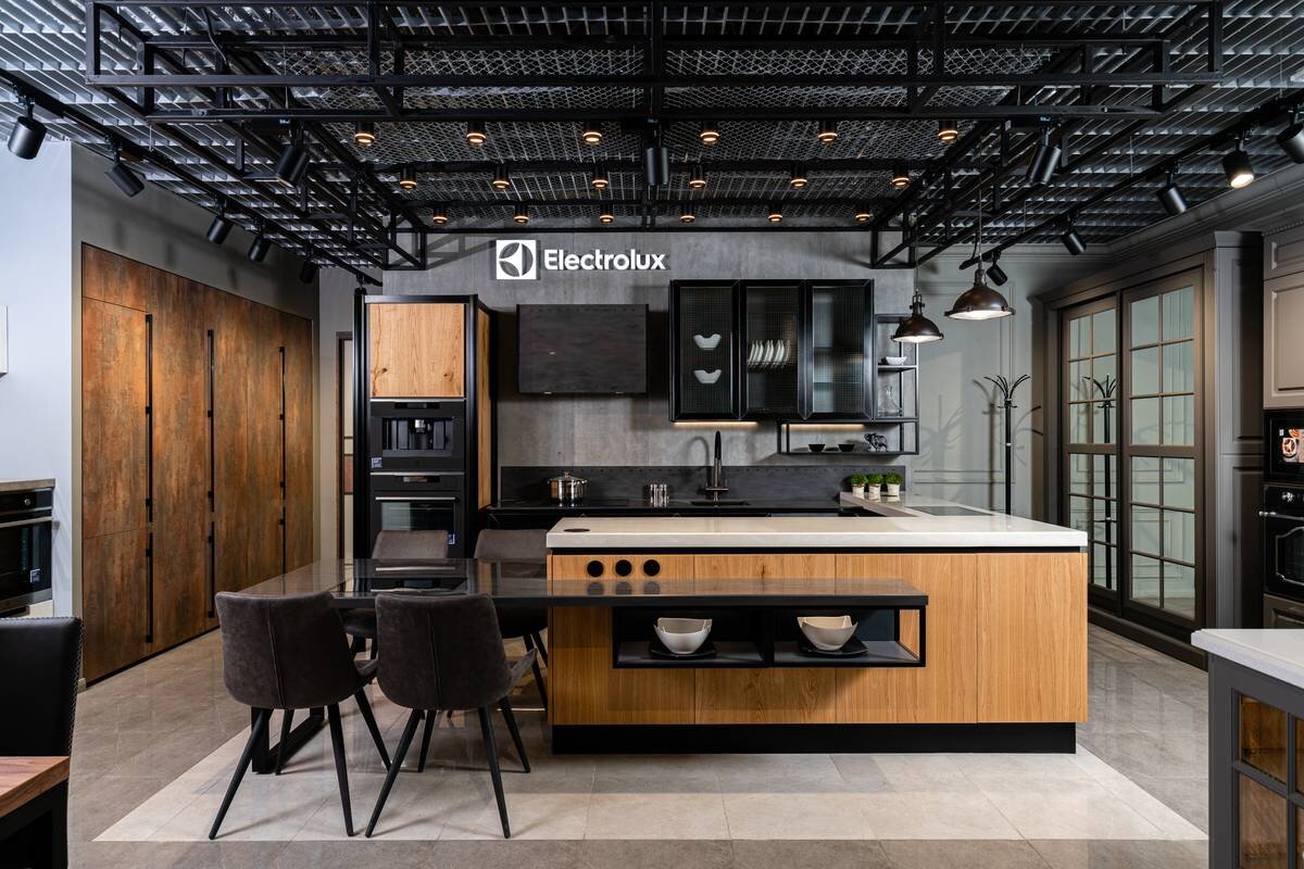 Продолжаем рассказ о выставочных образцах, представленных в новой флагманской студии «Мария» в ТРЦ «Афимолл Сити». Сегодня на очереди Antro – яркая модель в стиле индустриальный винтаж. Ее прародительница – концептуальная кухня с каменными и древесными фасадами на выставке «Мебель-2016» получила специальный приз в номинации «Инновации». С тех пор Antro претерпела значительные изменения, но сохранила, а вернее сказать, усилила свой дерзкий брутальный образ. Первое, что привлекает внимание в модели Antro, – это разнообразие ультрамодных фасадов. Выставочный образец в «Афимолле» демонстрирует все возможные варианты: Stone из МДФ толщиной 20 мм, облицованные натуральным сланцем цвета «черный камень»; Wood Natur, изготовленные по уникальной технологии нанесения двойного шпона дуба с эффектом старения дерева, видимыми сучками и трещинами; Vetro, представляющие собой металлические рамы с решеткой и армированным стеклом. Открытые полки из черного алюминиевого профиля и подве