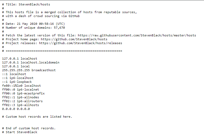На момент написания статьи в БД находится 57,670 записей, составленных на основе популярных публичных списков блокировки. Как же установить hosts файл? Тут есть 2 пути.