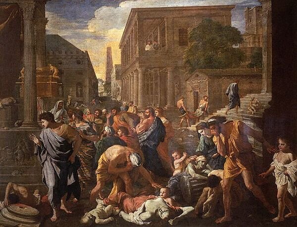 Церковь объявила не прекращающиеся болезни людей наказанием за грехи и проповедовала аскетизм и жертвенность. Поэтому в сюжетах средневековой иконописи часто изображались две жалостные фигуры: Иов, покрытый язвами, (особо почитаемый в Венеции) и бедный Лазарь, сидящий у дверей дома злого богача со своей собакой, которая лижет его струпья. Эти образы смиренных мучеников, «наказанных» болезнью и нищетой церковники расценивали как указание свыше пути обретения духовного мира.