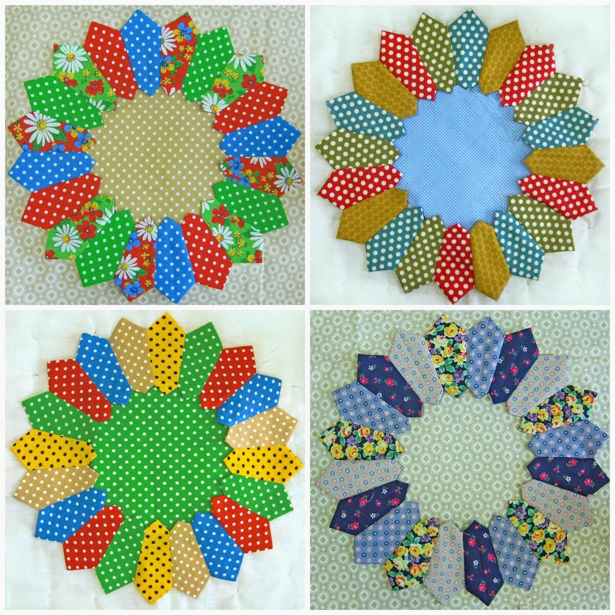 Вариантов блока "Дрезденская тарелка" - огромное количество. Но классический вариант - ромашка с сердцевиной. Как видите на фото выше, цветочек может быть и без серединки, а уголки