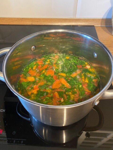 Так хочется выглядеть красиво, стройно и при этом кушать полезную и здоровую пищу. Когда мне хочется скинуть несколько килограммов, я начинаю готовить легкую еду. Как правило это блюда приготовленные из круп и овощей. Сейчас наступил такой момент, и я сегодня приготовила витаминный супчик. Супчик варится очень быстро, а набор продуктов требуется самый простой. Продукты: Воду налить в кастрюлю и довести до кипения. Картофель нарезать мелкой соломкой, опустить в кипящую воду, посолить по вкусу. Морковь нарезать мелкой соломкой и добавить в кастрюлю к картофелю. Перец нарезать и добавить в кастрюлю. Лук нарезать мелкими кубиками и отправить в кастрюлю. Помидор нарезать и отправить в кастрюлю. Добавить лавровый лист. варить недолго до готовности. Зелень и чеснок мелко нарубить, добавить в кастрюлю , помешать, и выключить. Дать супчику настояться несколько минут под крышкой. Какой красивый, ароматный получился супчик. Он такой легкий, весенний и очень вкусный! Приятного аппетита. Подписыв