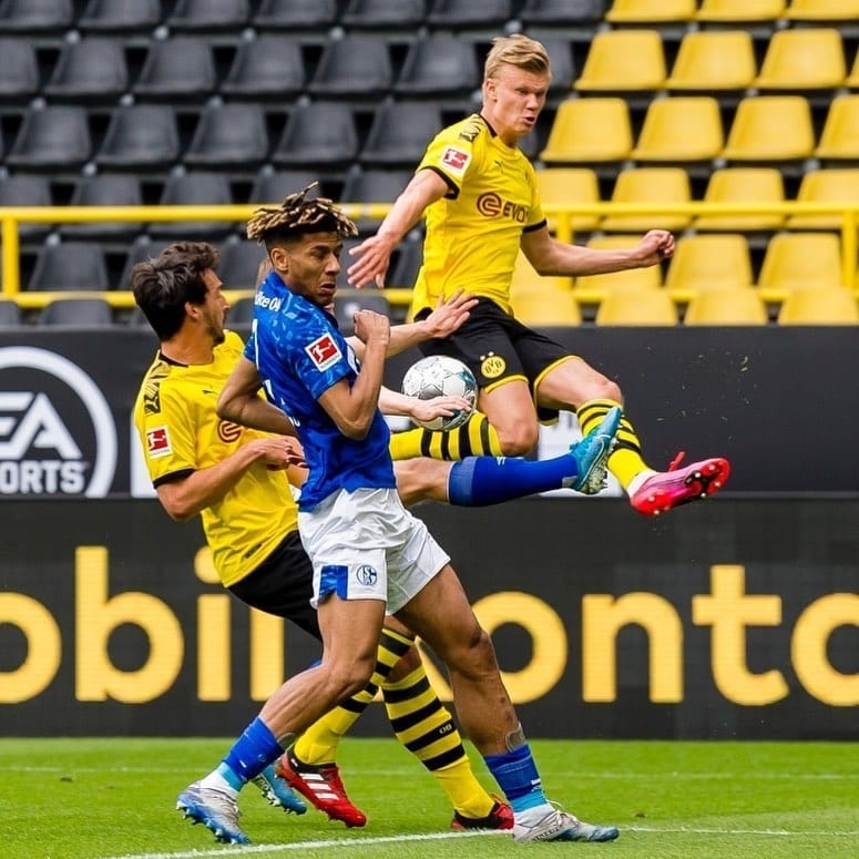 Дортмундская «Боруссия» в матче 26-го тура Бундеслиги разгромила «Шальке» со счетом 4:0. Счет в игре открыл норвежец Эрлинг Холанд – юный бомбардир воспользовался прекрасным ассистом Торгана Азара. Затем после ошибки Маркуса Шуберта отличился Рафаэл Геррейру.