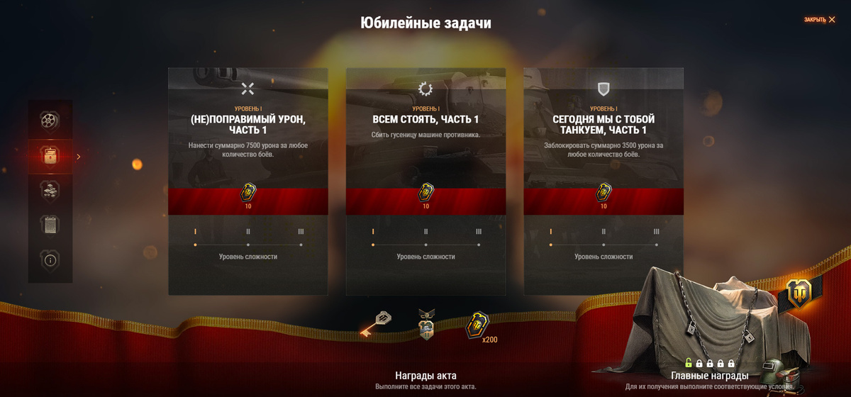 Когда активная фаза акта завершится, наступит затишье с более простыми ежедневными боевыми задачами, которые также выполняются в случайных боях и генеральных сражениях на технике IV уровня и выше.