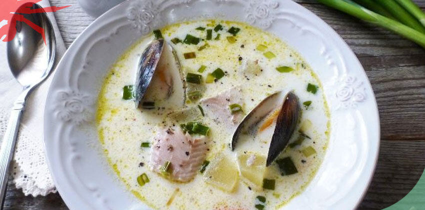 Ингредиенты: Для супа подойдет практически любая рыба, но лучше выбрать пожирнее и с маленьким количеством костей. Чистим рыбу и хорошо промываем, нарезаем крупными кусками. Наполняем кастрюлю водой и кладем туда куски рыбы. С момента закипания рыбу варим в течение 15 минут. Пока рыба варится, очищаем и моем овощи. Затем нарезаем морковь колечками и измельчаем зеленый лук. Картошку режем кубиками. На плите разогреваем сковороду, кладем сливочное масло. Обжариваем колечки моркови до приобретения золотистого цвета. Затем добавляем измельченный лук и все вместе обжариваем около 5 минут. Как только рыба сварилась, достаем, ждем, пока она остынет, и разбираем ее на кусочки. Процеживаем рыбный бульон, кладем в него кубики картофеля и варим минут 20. Перекладываем со сковороды обжаренные овощи, кладем мидии и варим в течение 5 минут. Затем добавляем сливки, соли, перчим по вкусу. Доводим до кипения и еще варим 5 минут. Суп готов. Приятного аппетита! Источник: https://wildcrab.ru/ne