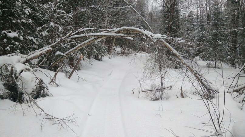 Дорога хоть и накатана, но узкая, и если оступиться, то нога проваливалась выше колена. Примерно 2/3 пути проходит по полю, и 1/3 по лесу.