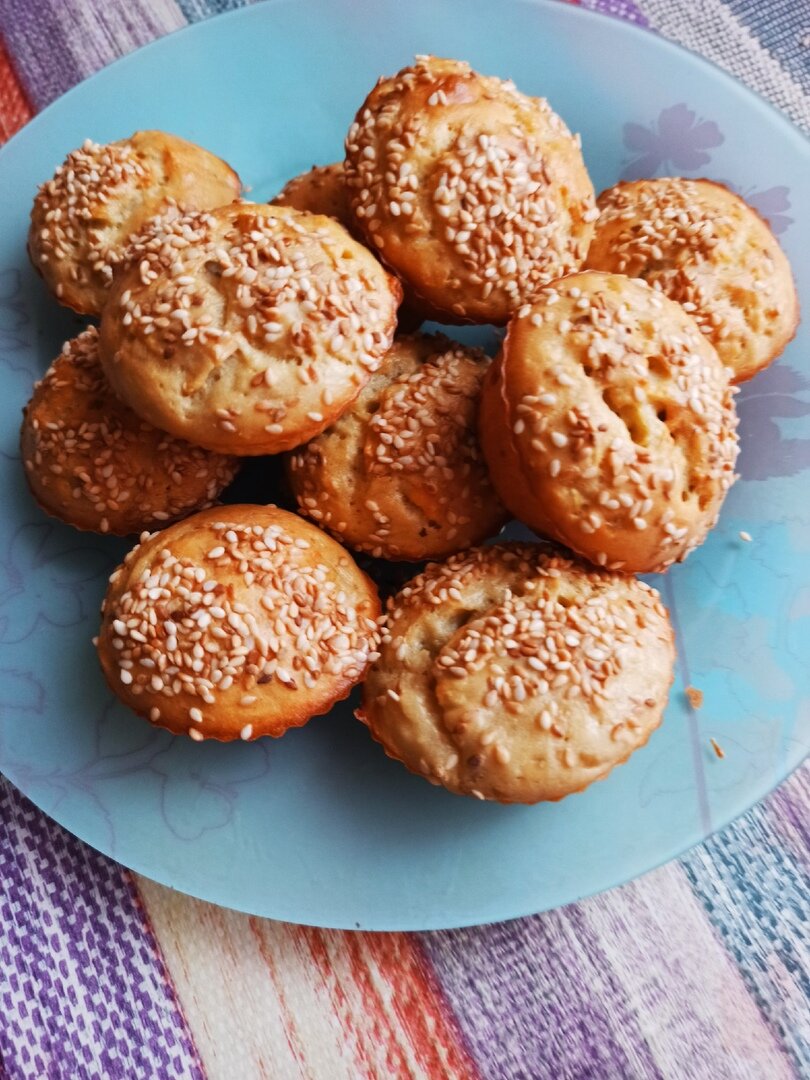 Ингредиенты: Приготовление: В глубокую миску отделяем белки от желтков, взбиваем миксером до устойчивых пиков. К белкам добавляем желток, аккуратно перемешиваем. У яблок убираем сердцевину, натираем на мелкой терке. Добавляем к яичной смеси, перемешиваем. Добавляем муку и разрыхлитель. Все перемешиваем. Раскладываем тесто по формочкам,сверху можно украсить кунжутом. Выпекаем при температуре 180 градусов, 15-20 минут. Приятного аппетита.
