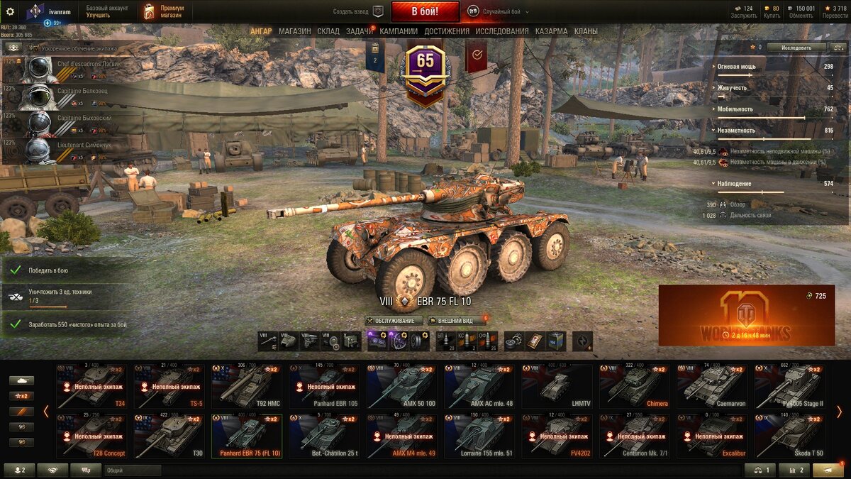 Здравствуйте.Сегодня поговорим про премиумный колесник.Если у кого есть этот танчик тот меня поймёт.Этот танк мародер так как можно безнаказанно уверенно ехать за вражеской артой.Далее светить у врага под носом и еще больше его злить.Некоторые враги даже не собираются его выцеливать потому что это бесполезно.Отличная маскировка,но обзор никакой я со всеми перками и оборудованием 390м раскачал(без доп пайков).Мобильность супер,особенно повороты со сбросом газа без потери скорости.Этот танк по имбовости стоит на первом месте,конечно если руки нормальные.Вообщем самый фановый танчик в моём ангаре.Спасибо.Не болейте