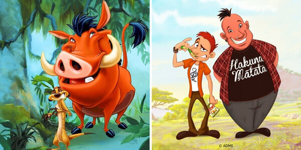На просторах сети нередко можно наткнуться на творчество любителей кино и анимации. Подобный вид современного искусства завоевал сердца многих фанатов и зрителей, поэтому число фан-артов растет с геометрической прогрессией. При этом находятся самые разные умельцы, готовые осовременить и преобразить образы всем знакомых героев. Например, художница Astkhik Rakimova создала серию работ для сервиса Adme.ru, где превратила персонажей-животных из мультфильмов в людей. У нее получилось достаточно необычные образы. Посмотрите сами! Тимон и Пумба из "Короля Льва" Тимон - суетливый, трусливый, но очень веселый сурикат, который вместе со своим другом Пумбой спасает Симбу. Пумба - оптимистичный, но "недалекий" бородавочник, который вместе с Тимоном спас львенка Симбу. Эти двое та еще компания. А вот такими людьми их видит художница. По Пинг из "Кунг-фу Панда" По Пинг - непоседливая большая панда, которая мечтает стать мастером кунг-фу и попадает на обучение к мастеру Шифу после того, как его нарек