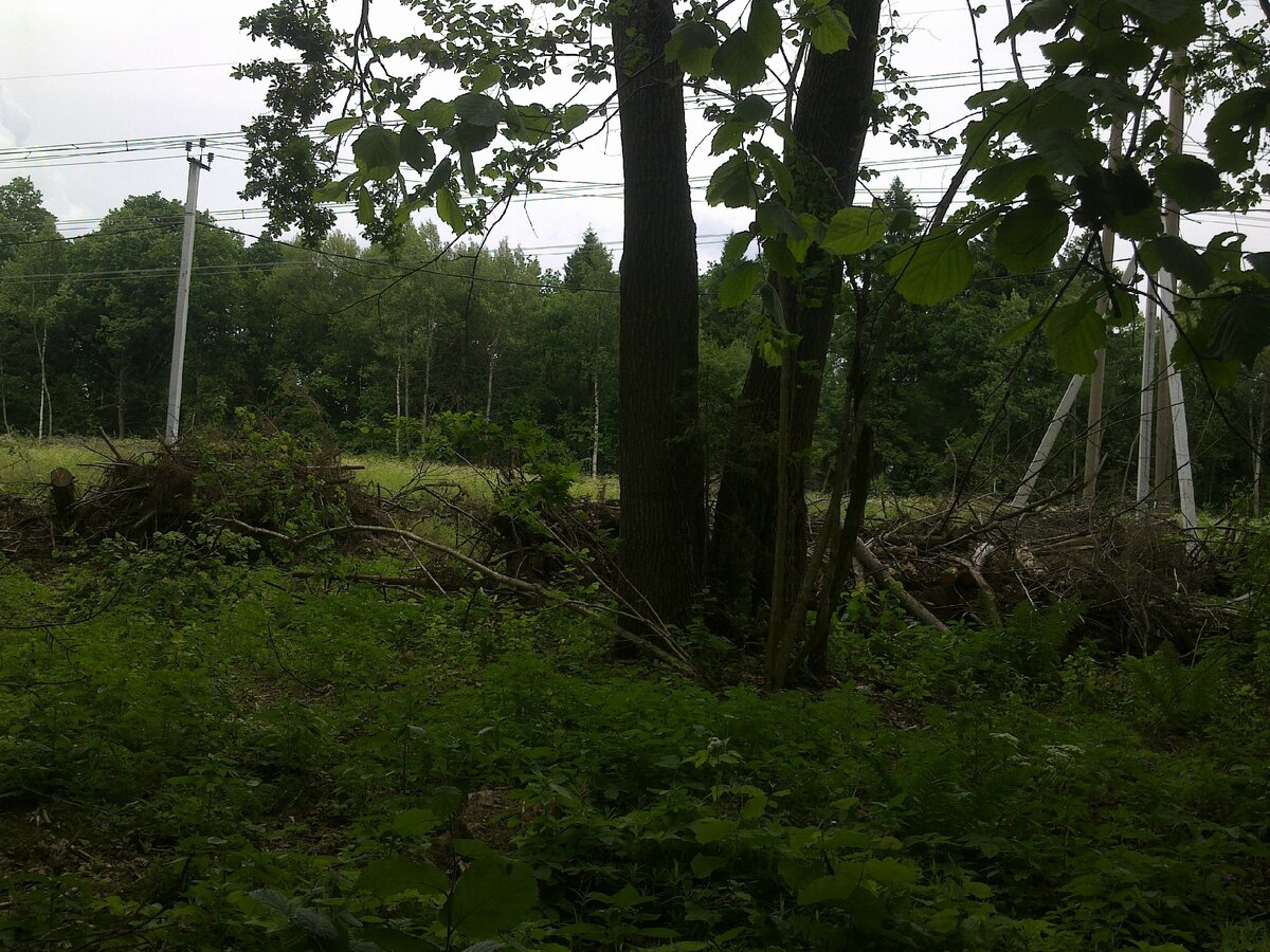 Хочу рассказать как я начала осваивать участок, на котором рос лес. Лес не принадлежит лес фонду и есть разрешение на спил деревьев. Сначало надо было найти границы участка, для этой цели вызвали геодезиста. Несмотря на начавшийся дождь и высокие деревья ему удалось найти ориентир мы забили первые колышки. Теперь было понятно где наш участок, а где соседей. Мы хотели оставить много деревьев,выбрать какие получше, приехав через пару дней обнаружили, что деревья были уже спилины. Осталось только несколько елей, осин и клёнов. На границе с дорогой растут вековые дубы. Участок находится рядом с ЛЭП, как проверить электрическое и магнитное поле на границе у меня есть отдельное видео. Как оказалось позднее , осина не очень подходящее растение для сада. Она даёт очень много поросли и считается растением -сорняком. Главное для освоения участка это сделать заезд. От дороги, на ширину проезда машины сняли плодородный грунт и засыпали всё большими камнями с грунтом. Получился впол