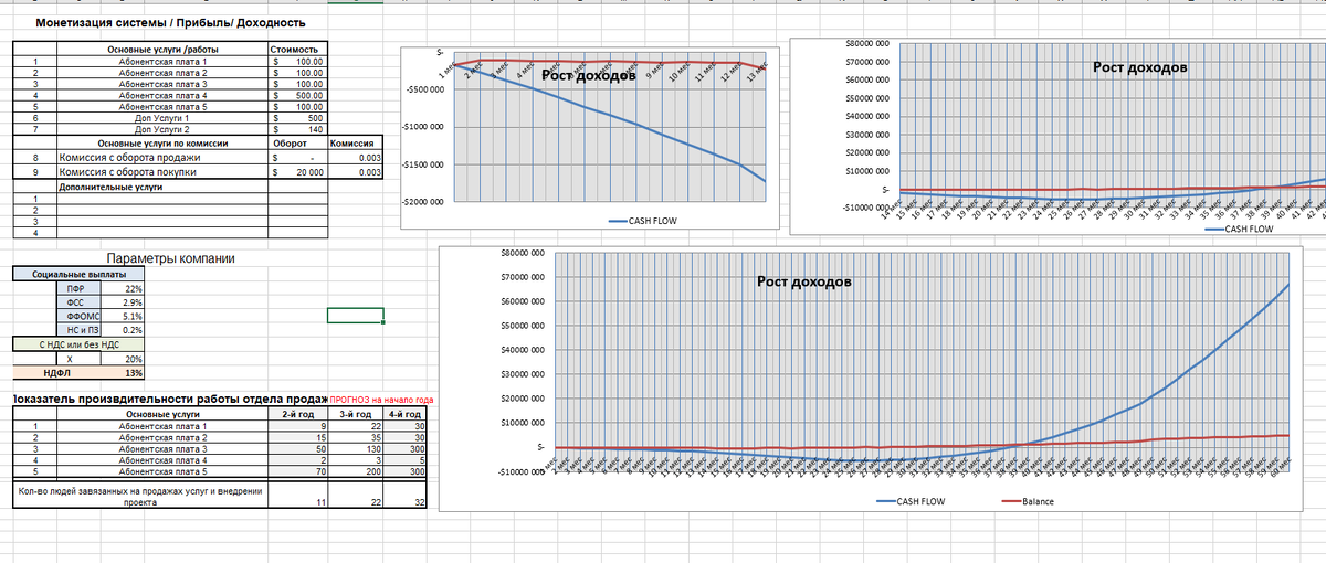 За 9 лет общения с различными бизнесами собралось много информации. Часть информации устаревает, но часть всегда остается актуальной. Хочу поделиться с вами одним шаблоном, который был разработан специально для прогнозирования эффективности бизнеса и сроков выхода на прибыль. Честно, такой подход поломал мне много сделок на много денег, так как когда собственник видит что его новый бизнес вообще без шансов к развитию, он естественно не заказывает ни разработку ни рекламу). Но что делать, лучше на берегу сразу объяснить почему не будет результата, чем потом оправдываться почему не получается выйти на прогнозируемые показатели или вообще развивать бизнес клиента. Пользуйтесь на здоровье, может сейчас мой файлик спасет и ваши деньги от необдуманных действий или наоборот подтолкнет к каким либо действиям. амое главное это заполнять входящие данный, и прогнозируемые показатели. Специально оставляю все данные в ячейках чтобы по ним можно было определить связи. По данному файлу проект выхо