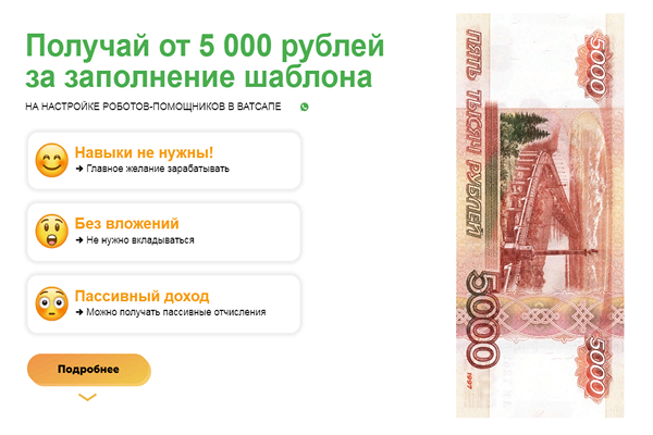 Получай от 5 000 рублей за заполнение шаблона Лёгкие деньги с интернета