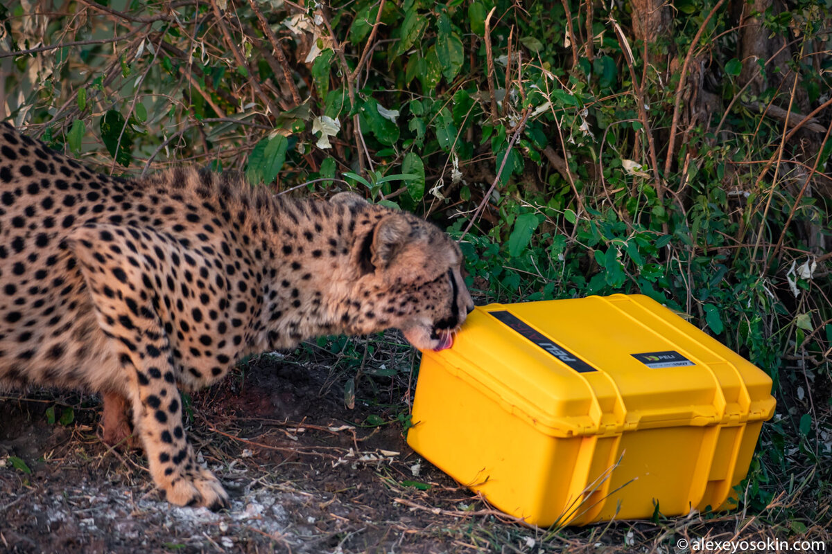 Во время съёмок в национальном парке Масай-Мара ко мне пришла семья гепардов. Я так увлекся, что не заметил их приближения. Пришлось все быстро собирать и прыгать в машину, но один кейс я все-таки не успел забрать... Гепарды отжали у меня ящик с аппаратурой... К счастью, благодаря прочности кейса, техника не пострадала. Гепарды поиграли и легли спать. Интересно, что они не пытались грызть его, а лишь только облизывали и обнюхивали. Их явно интересовал запах и вкус хозяина :) Уже темнело, поэтому ждать, пока котики отдохнут и уйдут, не было возможности. Сам я не решился идти "отнимать" кейс у гепардов, но на этот подвиг решился мой смелый водитель Тони... Все прошло гладко - гепард даже глаза не открыл. Защитный кейс и техника в нем не представляли для него никакого интересно, ведь его нельзя съесть... Вам также может быть интересно: Больше удивительных историй из мира дикой природы в журнале Зоография Не забудьте подписаться и поставить лайк!