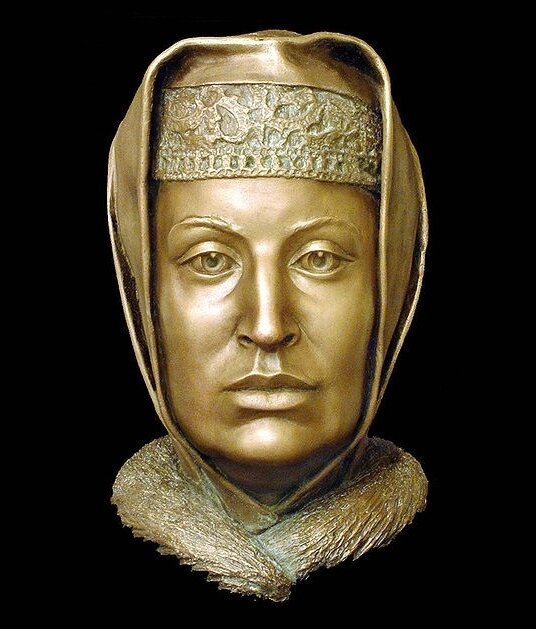 Софья Палеолог (1455 - 1503 годы) — бабка Ивана Грозного и супруга царя Ивана III. Умерла в возрасте около 50 лет. По ее черепу С. А. Никитиным в 1994 году была выполнена пластическая реконструкция, результаты которой ниже. В галерее представлен скульптурный облик русской царицы и пластическая реконструкция ее лица.