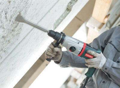 Перфоратор – востребованный инструмент, который отличается достаточной мощностью для работы с бетонными конструкциями. Его производительность позволяет сверлить высокопрочную поверхность или бурить ее, чтобы подготовить к последующим этапам ремонтно-строительных работ. Однако одним из наиболее популярных способов использования электроинструмента считается долбление стен или пола, изготовленных из БСГ. Основные правила работы с перфоратором в режиме отбойного молотка Долбить бетонную поверхность перфоратором под силу даже неопытному мастеру. Для этого необходимо перевести инструмент в режим отбойного молотка. В патрон вставляется специальная насадка в виде пики или лопатки. Перфоратор необходимо крепко держать обеими руками, так как в процессе долбления он сильно вибрирует. Рекомендуется использовать защитные очки во время работы, не только чтобы следить за качеством выполнения задачи, но и предотвратить травматизм. Дело в том, что от бетона могут отлететь мелкие осколки и попасть в
