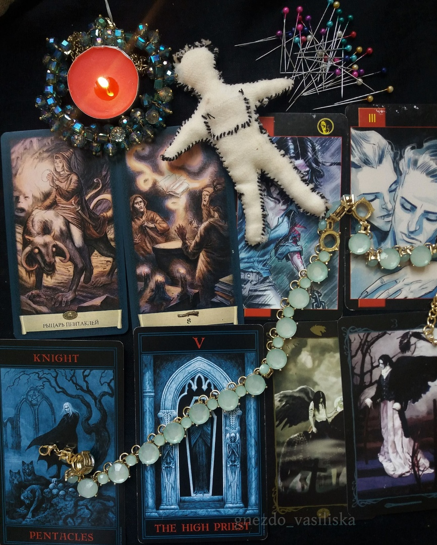Рыцарь Денариев в сочетании с Верховной Жрицей означает предателя. Если Жрица прямая, то загаданная личность предавала, предает ил предаст осознанно, если перевернутая, то, возможно, не по своей воле. В случае с перевернутой Жрицей надо задавать дополнительный вопрос. В обоих значениях, карты могу Вас предостеречь от негативного исхода. Но есть одно "но": если в личной сфере задать вопрос "Кто он мне (она мне)?" и выпадет это сочетание, то в независимости от положения Жрицы житья Вам с этим человеком не будет.