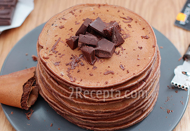 Ингредиенты: Как приготовить шоколадные панкейки 2.Влить молоко, добавить просеянную муку, разрыхлитель и какао. 3.Перемешать венчиком до однородности. В конце добавить немного растительного масла и снова перемешать. 4.Жарить шоколадные панкейки на сухой сковороде под крышкой с двух сторон.
