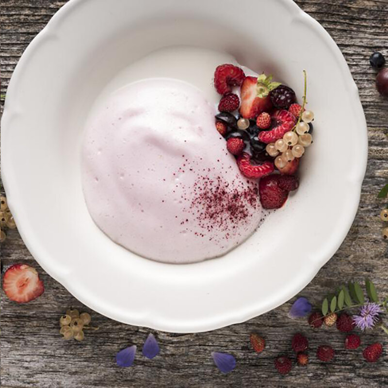 Ингредиенты Приготовление Разбавьте 200 мл концентрированного сока водой и подсластите сахаром. Доведите сок до кипения и добавьте манную крупу, постоянно помешивая. Варите на слабом огне приблизительно 10-15 минут, пока манка не разбухнет. Для получения мусса каша должна быть жидкой, наподобие супа. Дайте немного остыть и взбейте миксером до пышной пены. Сервируйте с холодным молоком и ягодами.