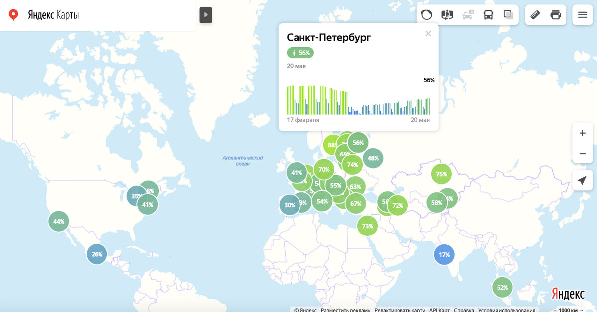 На данный момент сервис от «Яндекс» стал анализировать ситуацию в других странах.
