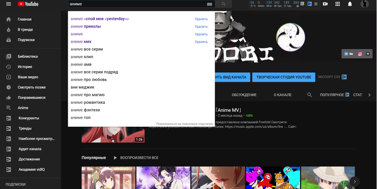 Находите видео по тематике вашего канала в моем случаи это аниме нажимаем поиск под поисковой строкой появится вкладка ФИЛЬТРЫ нажимаем на нее