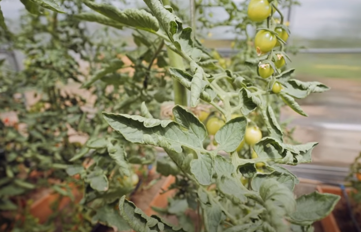 Просто прекратите вносить азотные удобрения, полностью их исключите и увидите уже через неделю, что томаты снова распрямится и пойдут дальше нормально развиваться.