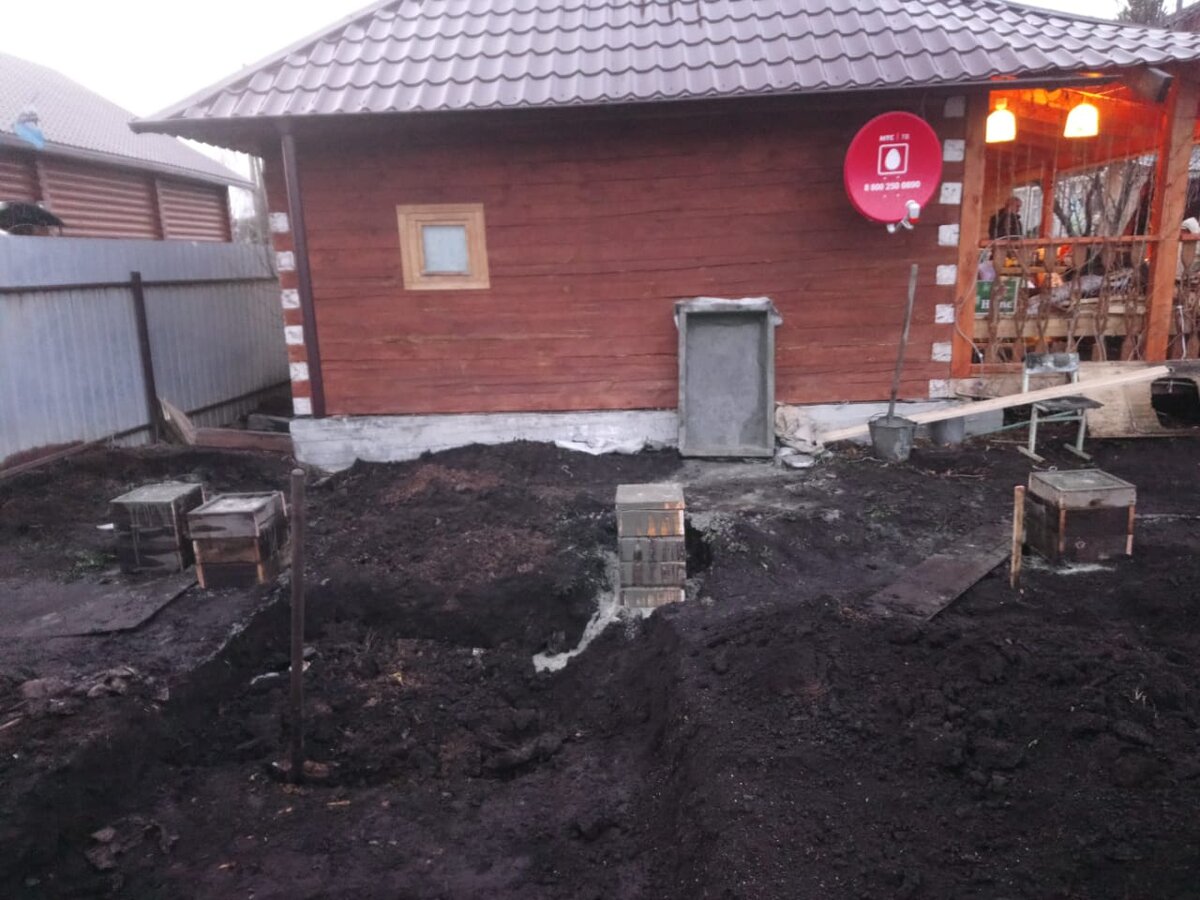 На этом объекте мы подшивали свес крыши, обшивали две стены блок-хаусом и должны были делать водосточную систему.