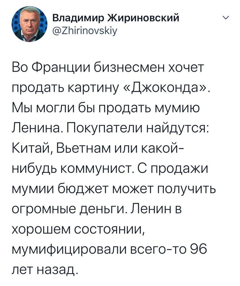 Прочила в Телеграм такой пост: Не знаю насколько это соответствует действительности, но сама идея мне не нравится. Считаю, что трупу Ленина действительно нечего делать на Красной площади. Его надо вынести и отдать коммунистам. А они пускай его хоть продают, хоть сжигают. Это их святыня, но не моя. Я был Октябрёнком, пионером, комсомольцем. Но когда осознал мир вокруг себя, то в партию уже вступать не стал. Пусть мертвецам молятся сектанты. Ленин - давно не мой кумир. Впрочем, как и нынешняя власть постепенно теряет рейтинг в моих глазах. Что касается мумии Ленина, то я бы не стал торговать трупами. Это мерзко. Но и сохранять труп в центре Москвы, в святом месте, где гуляют и отдыхают москвичи и туристы - тоже мерзко. Лично я не хочу гулять рядом с трупом. Пора избавиться от ложных ценностей и ложных кумиров. Может Ленин и был гениальным человеком, но свою бесчеловечную гениальность он обратил во вред России и народа. Таким деятелям не место в пантеоне богов и в святынях народа. Нам не