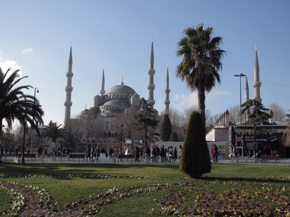 Около всех мечетей во все времена обустраивали просторные живописные дворики или сады. Территория вокруг Голубой мечети похожа на тихий оазис в шумном историческом центре Стамбула. Даже зимой в этом парке было зелено.