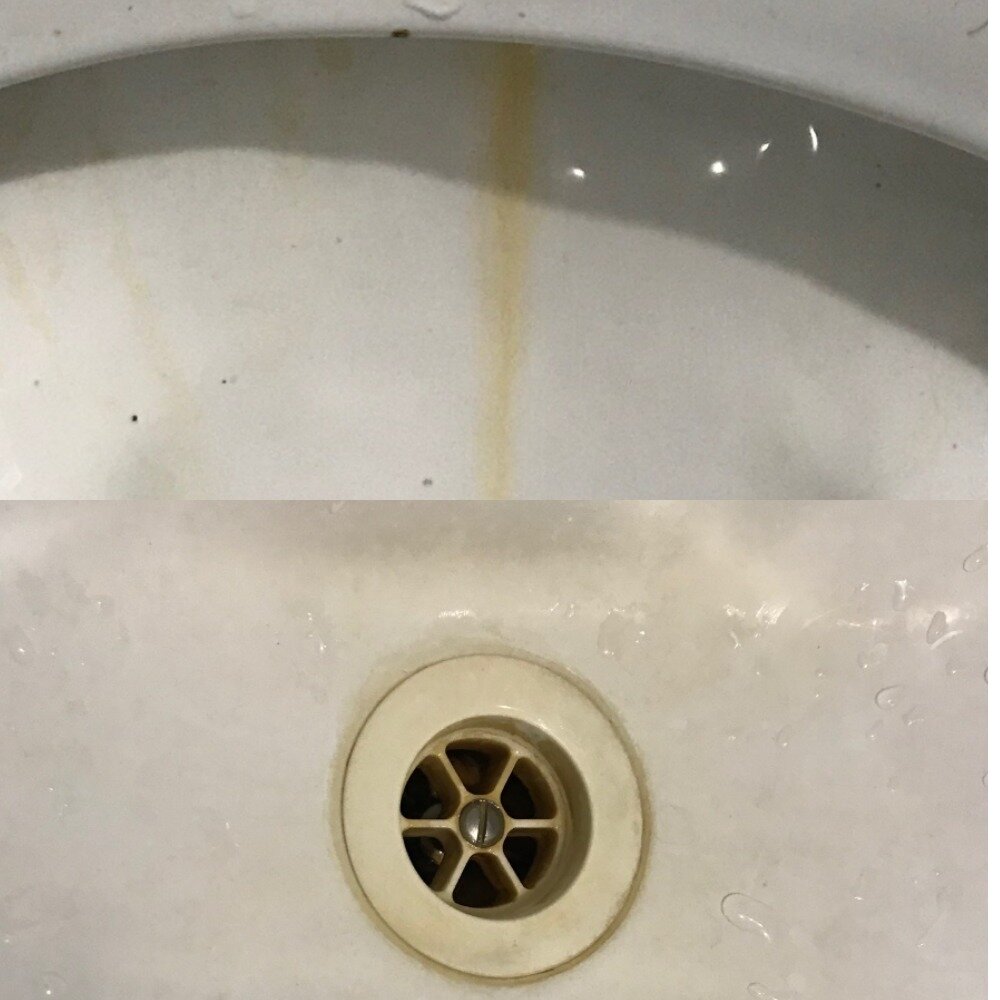 Если вы уже перепробовали абсолютно все средства и не добились того, чего хотели, то этот вариант Вы возьмете себе на заметку. Не нужно собирать целый арсенал чистящих средств, советских идей и шаманских ритуалов. Думаю для многих по сей день остается актуальной проблема следов ржавчины на раковине, унитазе, кафеле. Для нас это особо наболевший момент, так как в Петербурге вода переполнена железом, в следствии сантехника очень часто приходит в мягко говоря не презентабельный вид. Раньше, как наверное многие, мы использовали различные разрекламированные средства, которые по факту просто "маскировали" следы ржавчины и надолго такого, пусть даже удовлетворительного эффекта, не хватало. И проблема даже не в том, что приходится постоянно уделять особое внимание уборке, чтобы все выглядело красиво, а в том, что, если тщательно не убирать с поверхностей ту самую ржавчину, придется выкидывать деньги на новый унитаз, раковину или ванну, так как ржавчина глубоко оседает и разъедает м