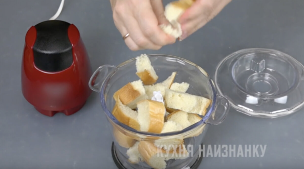 Мясные котлеты я готовлю обычно без панировки. Но однажды попробовала приготовить в такой панировке и теперь частенько готовлю именно так. Овощные котлеты получаются вообще шикарные! Попробуйте. Очень просто. А вкус блюда намного интереснее. Как я готовлю такую панировку, в видео ниже на 03:50. Там еще несколько идей, что можно сделать из вчерашнего хлеба. Посмотрите - вам точно понравится)) Как готовить Хлеб разламываю на кусочки и отправляю в измельчитель. Использую чаще всего батон. Но любой хлеб подойдет (желательно, не очень свежий). Теперь в измельчитель отправляю несколько зубчиков чеснока и немного растительного масла. Любые специи можно добавить, зелень, лук - тоже вкусно. Измельчаю все, чтоб получилась крошка. Можно вместо измельчителя воспользоваться мясорубкой. А если и мясорубки нет - можно натереть хлеб на терке. Теперь - на противень. И в духовку! Духовку предварительно разогреваю до 180 градусов. Готовлю сухарики примерно 8-10 минут. Смотрите по своей духовке! Один-дв