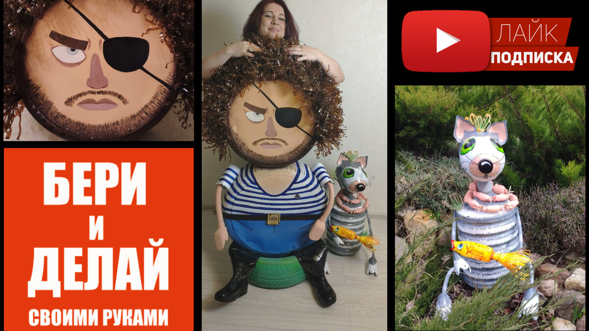 Думаю многие поняли, кто вдохновил меня и выступил прототипом этого пирата. Илью Варламова я уважаю и согласна со многими его мыслями и утверждениями. Но его отношение к поделкам из шин я не разделяю, о чём написала отдельный пост на своем канале: