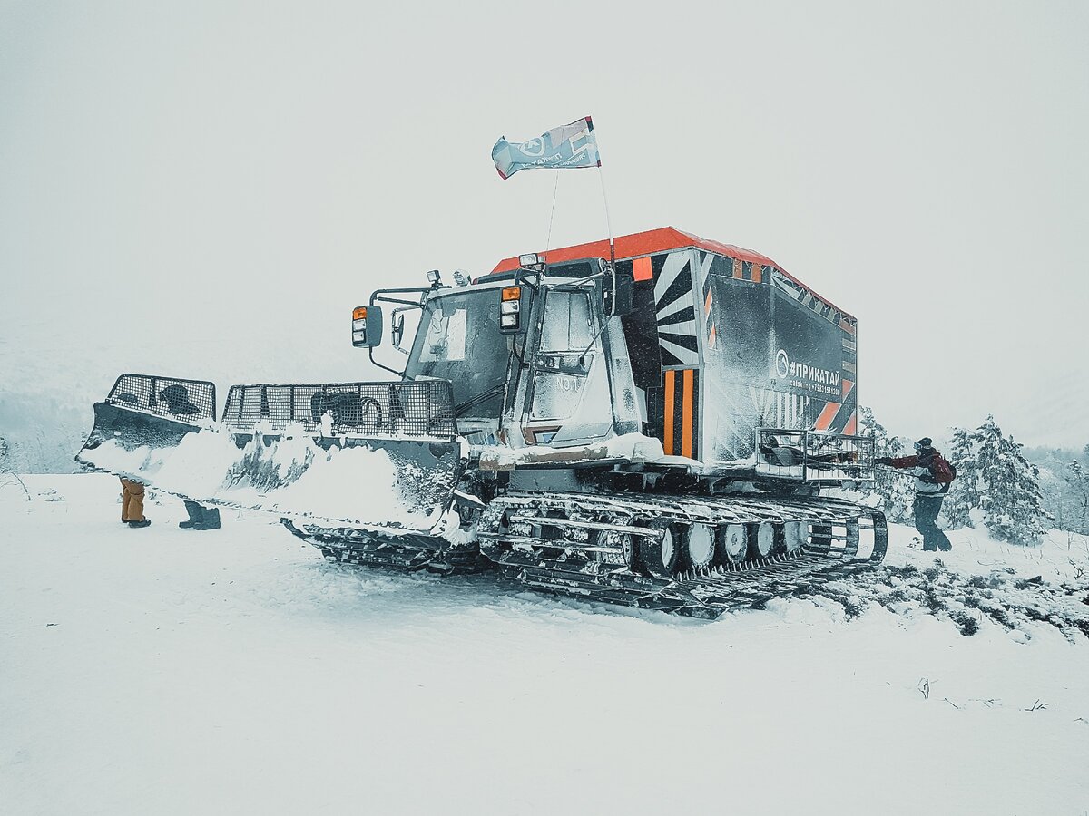 ДЕНЬ ВТОРОЙ... «Гид не катается – он на работе!» с.Это, конечно, был прикол… Шел первый катальный день… дул ветер, ратрак был сломан, толпа на горе роптала! Лично я грустил и фотографировался на фоне вытекающего трансмиссионного масла, оно так поэтично ложилось красными пятнами на снег…. Наш гид торжественно объявил о начале спасательной операции. Помощи ждать неоткуда, вокруг зима, тайга и лютый мороз… ну так себе лютый, конечно… П...-приключения!Весело вщелкнувшись в крепления мы дружной гурьбой, ну как дружной, наш гид усвистел в закат в первые же секунды, нормальной, в общем, такой толпой, ринулись вниз весело кувыркаясь в снегу. Гида мы догнали, есть версия, что он поддавался, а может и ждал, но это не точно.Спустились до промежуточной точки – все. Благо лес был не густ и раскатан, а сорваться к ручью пораньше ни у кого в голове не щелкнуло. Спуск к подножью оказался менее удачным, один из наших боевых товарищей повредил ногу, то ли о дерево, то ли о дружеский кант, это не важно.