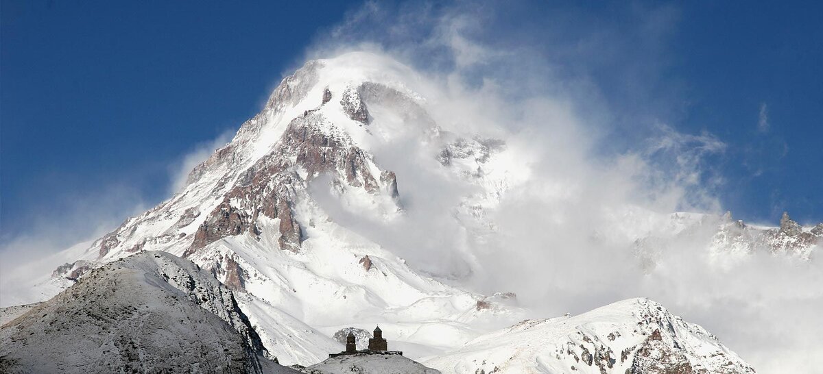 Казбеги – это самый высокогорный и полностью горный район в Грузии, это горный воздух и неземная красота для души и глаз. Для человека, который хочет соприкоснуться с прекрасным и величественным Кавказом, ощутить суровую атмосферу жизни настоящих горцев, надо непременно отправиться в Грузию Казбеги. Можно сказать, что здесь царствуют горы, так как Казбеги – высокогорный район. Это место ещё называют вратами в Грузию, ведь именно здесь проходит Военно-грузинская дорога, связывающая Россию с этой овеянной легендами страной. Гора Казбек Путешественники часто приезжают в эти места посмотреть на Казбек, ведь он окутан невероятными легендами. Снежные вершины часто прячутся в густых облаках. Невероятно, но существует древняя греческая легенда, которая повествует, что к вершине Казбека был прикован Прометей в наказание за подаренный людям огонь. Высота горы 5033 метров. Ученые доказали, что это угасший вулкан, который спит уже более 6 тысячелетий. В наши дни это прекрасное место для з