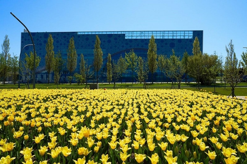 С наступлением тепла преобразилась «Большая картина полей» — система цветников рядом с «Москвариумом», формирующая настоящую абстрактную картину в духе полотен Кандинского. Уже сейчас на площади 3600 кв. м распустилось более 250 тысяч тюльпанов, которые были высажены еще осенью. После открытия территории Выставки гости смогут оценить цветочный орнамент, ведь на смену тюльпанам придут горчица, гречиха, лен, просо, ячмень, подсолнечник и фацелия.