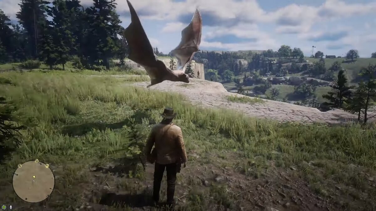 В Red Dead Redemtion 2 игроки оседлали огромную огнедышащую летучую мышь.