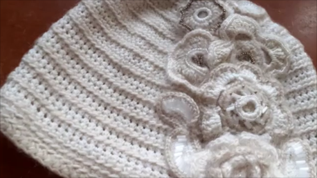 Перед вами вот такая шапочка, которую я связала из остатков ниток. Начну, пожалуй, с того, какие нитки я использовала. Это был хлопок (100%) бежевого цвета, оставшиеся от вязания летнего джемпера. Затем, остаток мохера (не помню уже, что из него вязала). также - хлопок белого цвета чем-то похожий на пряжу "Пион". также для создания шапочки мне понадобился бисер. Как вы видите, шапочку я вязала столбиками без накида рельефными рядами, если так можно сказать. Цвета нитей в процессе вязания меняла равномерно. Когда шапочка была уже готова, я решила связать к ней теплую подкладку из шерстяных ниток. Однажды я решила шапочку выстирать и эта подкладка изменилась до неузнаваемости: она села настолько, что моя голова уже не влезала в шапочку! Тогда я решила её отрезать, оставив только небольшую часть шириной 2-3 см. по окружности головы: Затем я решила шапочку украсить и связала несколько элементов ирландского кружева. Это был мой первый и единственный опыт вязания ирландского кружева. По-мое