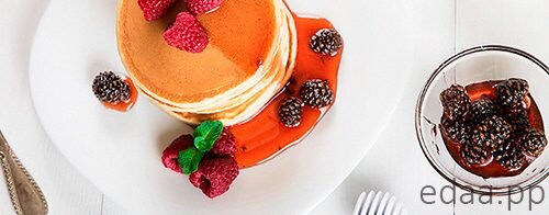 - Вот и все, готовые горячие панкейки можно подавать к столу, полив их любимым сиропом и украсив любимыми ягодами. Приятного аппетита!
