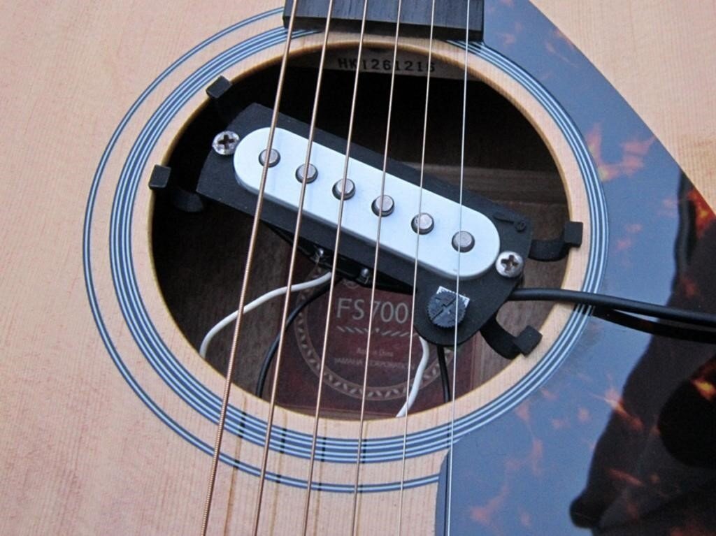 Сделай сам звукосниматель для акустической гитары, отлично подсчитывает звук. Вы можете поэкспериментировать: прикрутить крошку на усилитель, это будет небольшая перегрузка и даже более плотный звук. Хамбакер или одиночка?