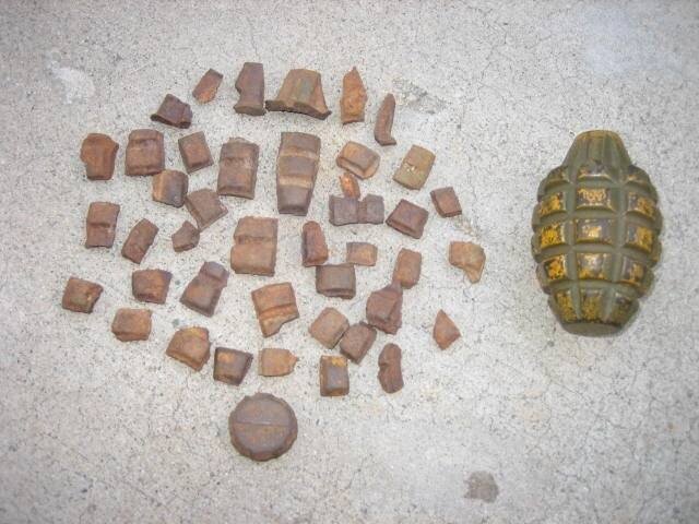 Есть достаточно распространенное мнение, что насечки на корпусе гранаты Ф-1 нужны для того, чтобы этот самый корпус проще дробился на осколки. Я нашел даже статью с этим фото. Ее автор утверждал, что примерно на такие осколки и разлетается граната при взрыве: