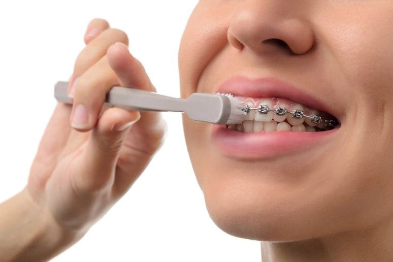 Случаи серьезного искривления эстетическая стоматология эффективно исправляет. Главный помощник в этом – брекеты. Но при неумелом уходе за ними могут появиться сопутствующие проблемы с зубами. Поэтому необходимо знать, как чистить брекеты, а также что для этого нужно использовать. Любые конструкции нуждаются в регулярном уходе. В такой сложной конструкции легко застревает пища. Поэтому недостаточно просто прополоскать ротовую полость. Даже при видимой чистоте в труднодоступных местах могут скапливаться частички пищи. Со временем они начнут гнить, а в пространстве между зубной поверхностью и конструкцией станет образовываться патогенный налет. Все это повлечет неминуемое разрушение зубной эмали. Если «проворонить» образование кариеса, конструкцию придется снять раньше положенного срока. В противном случае зубы разрушатся. Все это не только продлит лечение зубов, но и добавит материальных затрат. Ведь ожидаемый эффект от ношения выпрямляющего устройства достигнут не будет. Поэтому еще на