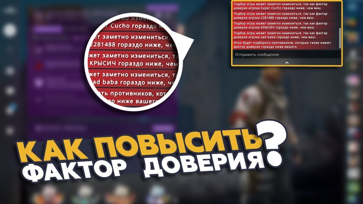 Привет Сообщество CS: GO! Я знаю, что у многих из вас есть проблемы с фактором доверия, как и раньше, но следуя инструкциям, которые я напишу ниже, вы сможете преодолеть эти проблемы и снова захотите играть в CS. Прежде всего я хочу поговорить о том, какие факторы делают ваш фактор доверия низким, чтобы вы могли избежать в будущем низкого фактора доверия, и после этого я составлю список того, что вы должны сделать для увеличения, я могу вас заверить, если вы следуйте этим шагам, у вас будет более высокий фактор доверия, как я сделал их сам, и это помогло мне. Основная часть ВЕЩИ, КОТОРЫЕ ДЕЛАЮТ ВАШЕ ДОВЕРИЕ ФАКТОРА НИЖЕ: