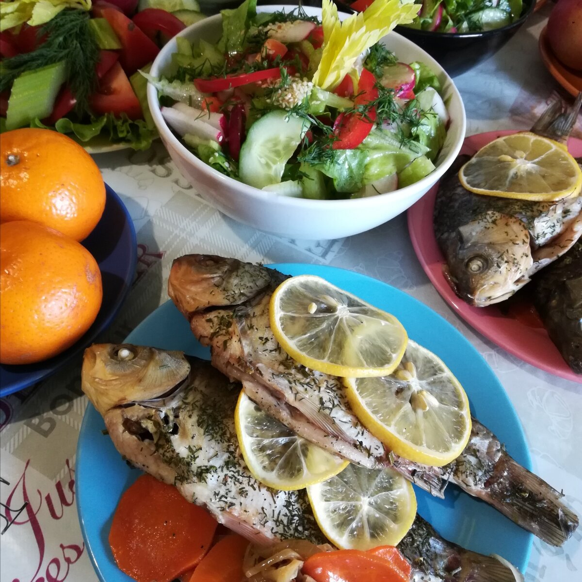 Доброго времени суток, дорогие друзья! Подписывайтесь на мой канал, оставляйте комментарии, готова к конструктивной критике! Как же здорово в гостях на свежем воздухе!🤸 Проснулась от пения птиц.🕊️ Выхожу из дома🏠- а тут ТАКОЕ!!!😋 Раннее утро, а кума уже приготовила очередной шедевр!👩🍳 Мой сладкий сон торопливо помахал мне ручкой. Карасей 🎏она запекла в духовке в фольге без масла. На подушке из лука и моркови 🥕. Соль, перец, укроп, лимон🍋 Получилось что-то волшебное (фотографировала специально для меня).💖