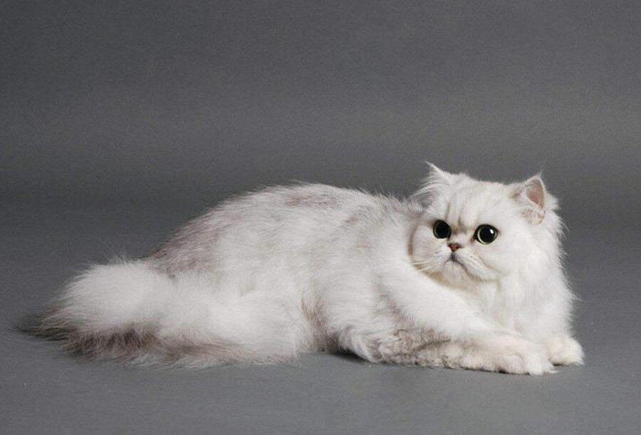 Шиншиллы - это не отдельная порода кошек, а удивительный окрас, который превращает шерстку британских, шотландских и персидских котов в серебряную или золотую шубку, чуть подернутую темной дымкой Чтобы не путать их с персами придумали новое название окраса - тикированный. Позже от подобного разделения отказались и персидская кошка вернула своё родовое имя, а термин "шиншилла" стал обозначать только цвет. Самые распространённые два окраса шиншилл - это серебристый и золотистый окрасы. 1-СЕРЕБРИСТЫЕ КОШКИ - Основание волоса окрашивается слабо или вообще остаётся белым. У идеального шиншилового кота окрашена только 1/8 часть длины волоса. Согласно принятым нормам, окрас серебристая шиншилла носит белый с затемненными краями, что создает эффект наличия серебра на шерсти животного. Из-за небольшого покрытия меха в черный цвет, создается ощущение, что кошка носит черную вуаль, которая распространяется на спину, лапы и хвост. Благодаря своему нарядному виду и очень ласковому, привязчив