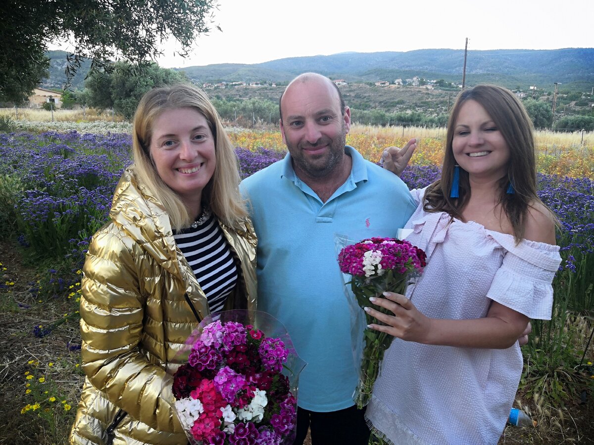 Не всегда складно, но в деталях верно. Один момент вчерашнего дня и щедрость греков в стихах Синие цветочки. Какие синие цветочки, Ах как кружится голова! Но вот забор нас разделяет, Забор преодолею я. Вот муж на выручку пришёл, И чтобы юбку не порвала, Ворота он открыл ключом, Я улыбнулась виновато. Рай цвел, благоухал цветами, Многообразие тонов. Охапками цветы хватаю, Но страшно, ведь вот-вот спалюсь! И тут услышав мои страхи, Бог мне послал боса цветов. Он ехал мимо на машине, И вдруг заметил он воров. Он шёл ко мне, а я дрожала, Охапку спрятав меж кустов. И робко говорю: "простите", Мне захотелось так цветов. Ни слова не поняв по-русски, Грек сообщил мне: "No problEm" Махнул рукой мне однозначно, Что значило: "пойдём за мной" . Ну все, хана, мы все попали, Но молча следуем за ним. Нас щас одарят - шепчет Ксюша, Нас всех прибьют - не верю я. Но правда Ксюшина взяла, И Скатис встретил нас с цветами. Потом провел нас по садам, И сделал фото нам на память. Вот такой случай произошел в