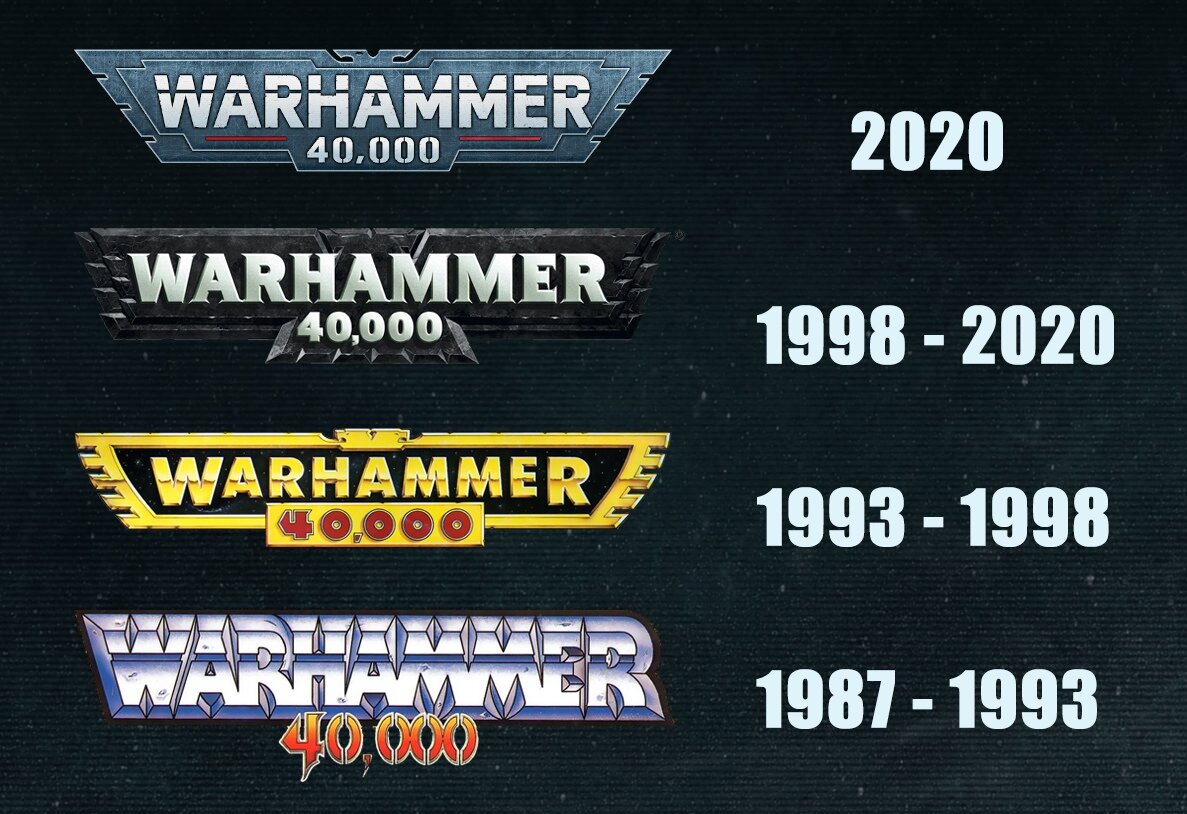 О первых двух логотипах многие из вас едва ли слышали, тут речь идёт прям совсем об олдфагах (продукцию со вторым логом я застал лишь совсем чуть-чуть. Но я тогда и понятия не имел, что такое Warhammer). Третий вариант логотипа продержался долгих 22 года и стал... вечным? Даже вечное когда-нибудь кончается, пришла пора провести ребрендинг.