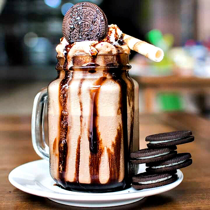 Неприлично красивый напиток, который и взбодрит и освежит. Фраппучино с шоколадным печеньем! ⠀ 👩🍳Ингредиенты: ⠀ Охлажденный кофе — 240 мл Сливки — 50 мл Шоколадный сироп — по вкусу Шоколад — 60 г Шоколадное печенье — 60 г Лед — 200 г ⠀ 👩🍳Для украшения: ⠀ Взбитые сливки Шоколадное печенье На 100 г — 166 ккал ⠀ 👩🍳Приготовление: ⠀ Соединяем все компоненты. Измельчаем с помощью блендера. Подаем, украсив сливками и печеньем.