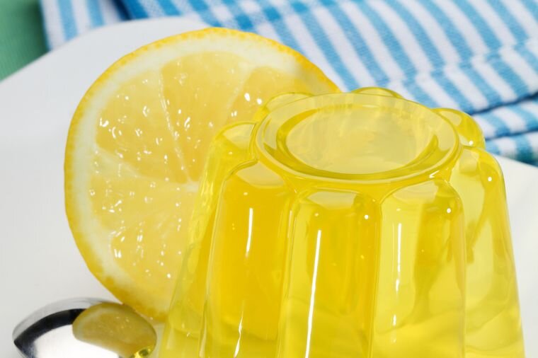 Выдавливаем сок из лимона в стакан и выливаем в кастрюлю с желе