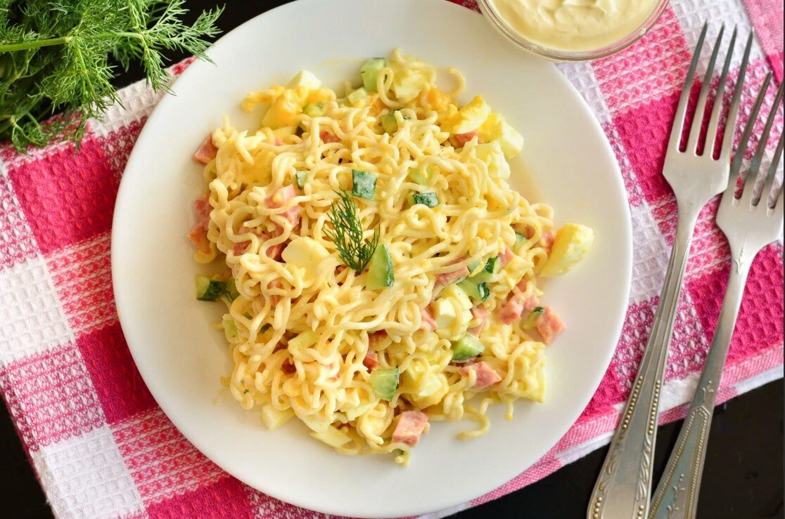 Бывают такие салаты, которые могут семейный бюджет сильно пошатнуть. Но я вам дам самые недорогие рецепты. Заранее попрошу - если статья вам понравится, поставьте отметку "Нравится". 1. Салат с лапшой Ролтон Я помню этот рецепт очень хорошо. Этот салат нам мама делала в 90е, когда вообще ничего не было в холодильнике. А последний раз я его кушала будучи студенткой)) Что входит? Ролтон, вареные яйца, майонез. Это основные ингридиенты, но должен быть еще один и он на выбор: кукуруза, морковь по-корейски, плавленный сырок, колбаса, сосиски. Преимущество этого салата в том, что дополнить его можно любым продуктом, который в холодильнике есть. И будет вкусно. Только специи от лапши не кладите. 2. Салат свежий Не знаю как он точно называется, но он вкусный. Подойдет любителям салатов с капустой. Что входит? Капуста, свежий огурец, яблоко, сметана или майонез. Состав очень простой, но получается очень классно. Главный секрет - нарезка. Постарайтесь капусту резать довольно мелко, а огурец и
