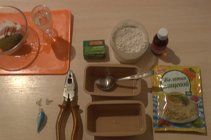 Видео: Силиконовая приманка своими руками. Лайфхак. Делюсь опытом. Решили, с подачи жены, которая, уже, давно - спиннингист, сделать силиконовую приманку. Используя, при этом, доступные и недорогие средства. Они на фото. Да, относительно, недорого. Желатин и глицерин - 70 руб. Алебастр у меня был. Делаем! Замешиваем алебастр и заливаем в "ванночки". Любые, подходящие по размеру. Далее - обмакнув в любое масло (во избежание прилипания) притапливаем форму в алебастр. Я, для себя, выбрал маленький воблер. Конечно, сняв с него крючки. Получилось очень неплохо... Со второй стороной рыбки делаем то же самое. Получается два, своеобразных, "полупопия" нашей приманки. Потом замешиваем желатин и глицерин. Примерно 1:1. Но, это - примерно... И желатин и глицерин бывают разные. Производители и технологии тут "имеют место быть"... Далее, постоянно перемешивая, эту интересную смесь - помещаем на "водяную баню"... И ждем... Постоянно проверяя... Перемешивая... Нужно - чтобы растворился желати
