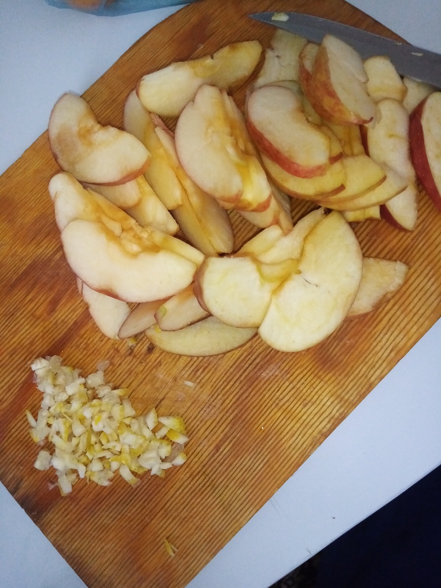 Сидела сегодня, смотрела сериал. И так захотелось чего-то печёного и сладенького.... Исходя из набора продуктов, найденных в холодильнике, выбор пал на шарлотку. Для вкусняшки мне понадобилось 5 мелких яиц, стакан сахара, 2 средних яблока, 3 столовые ложки муки, для аромата чайную ложку лимонной цедры. Режим яблоки на ломтики. Хорошо взбиваем яйца с сахаром. Добавляем муку и аккуратно перемешиваем, движениями снизу вверх. Смазываем сливочным маслом форму и посыпаем манной крупной. После чего выливаем тесто и выкладываем дольки яблок. Ставим запекаться в духовку при температуре 170°С, около часа, до насыщенного цвета. Буду рада, если кому-то пригодится наш семейный рецепт. Приятного аппетита.